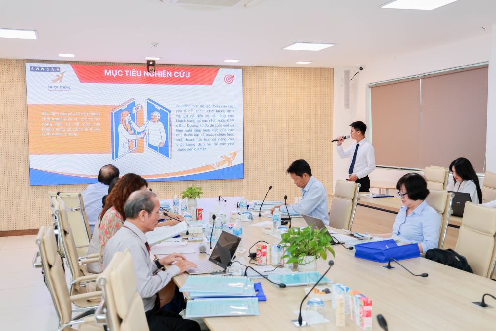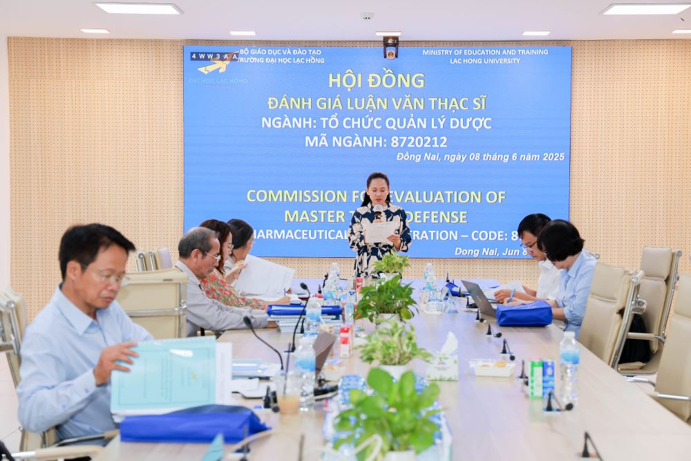 On June 8, 2025, at the meeting room of Campus 1, Lac Hong University (LHU), ten graduate students from the Pharmaceutical Management and Organization program successfully presented and defended their master’s theses before a professional academic council. The defense session was conducted in a solemn, scholarly, and professional atmosphere, marking a significant milestone in the university’s graduate training process.