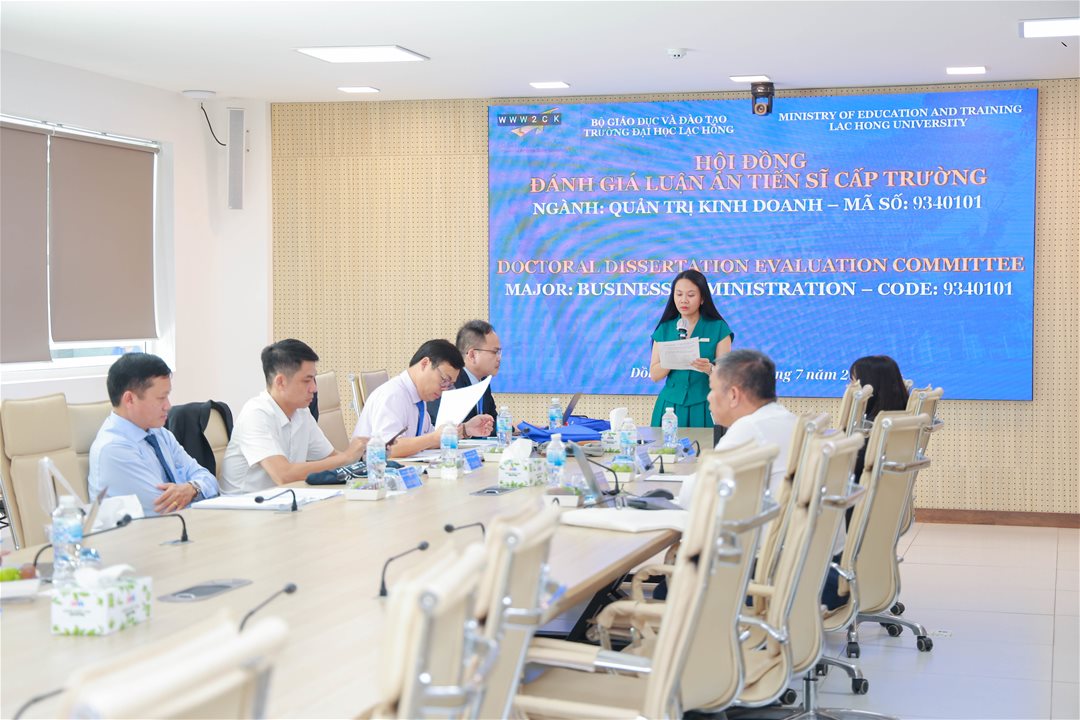 On July 28, 2025, the Faculty of Postgraduate Studies at Lac Hong University held a university-level doctoral dissertation defense in the field of Business Administration for Ph.D. candidate Nguyen Thi Phuong Thao.