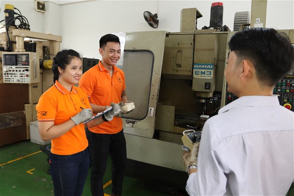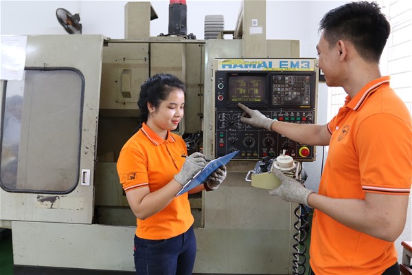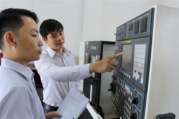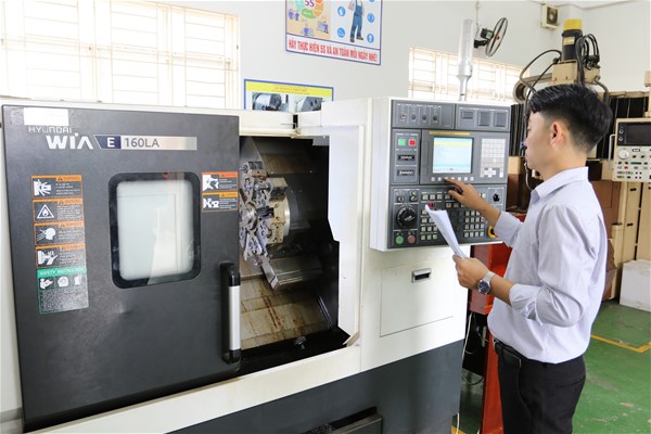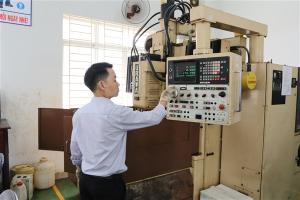 Sinh viên học thực hành trên máy CNC (gia công sản phẩm thực tế)